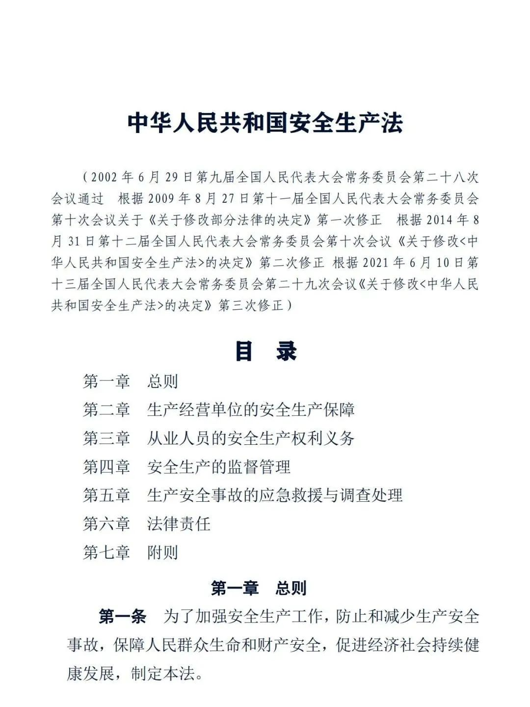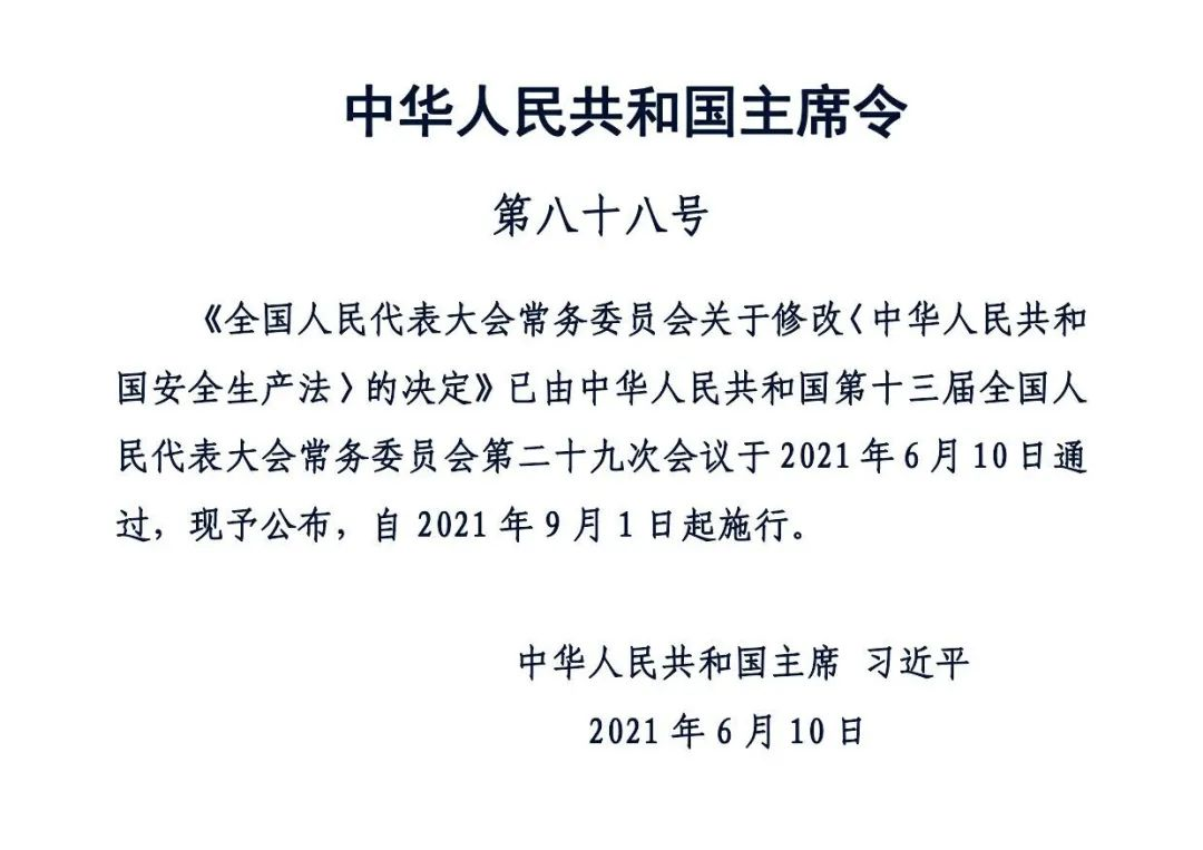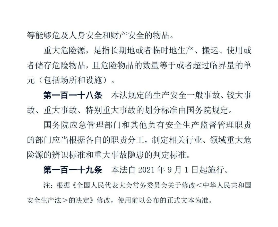 正式版《中華人民共和國安全生產法》