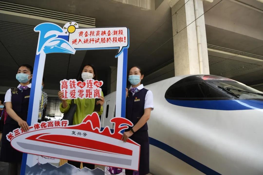 5月27日13時,一列試運行檢查確認列車從合肥南站始發,沿著商合杭高鐵合肥至湖州段,駛向蕪湖、宣城、湖州等方向。至此,商合杭高鐵合湖段聯調聯試圓滿結束,正式轉入運行試驗階段,距離全線開通運營時間越來越近。